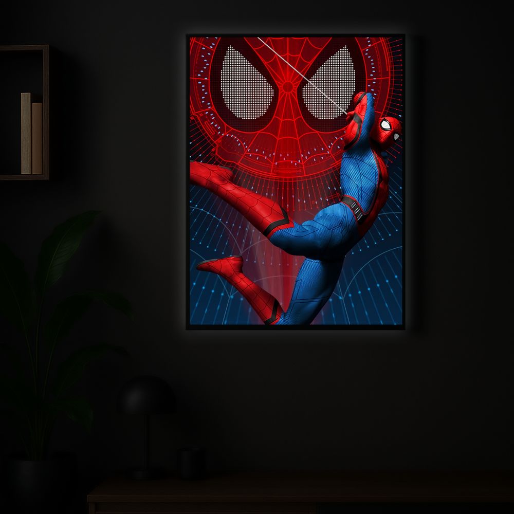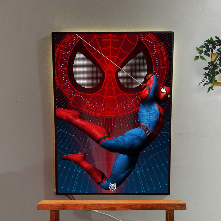The Into the Cyber Verse – Glow Art Board is a cool, light-up wall art featuring Spider-Man swinging in front of a digital, futuristic background. When the light is turned on, the bright colors and cyber-design make your room look modern and exciting. It’s perfect for bedrooms, gaming setups, study areas, or as a gift for superhero fans.
