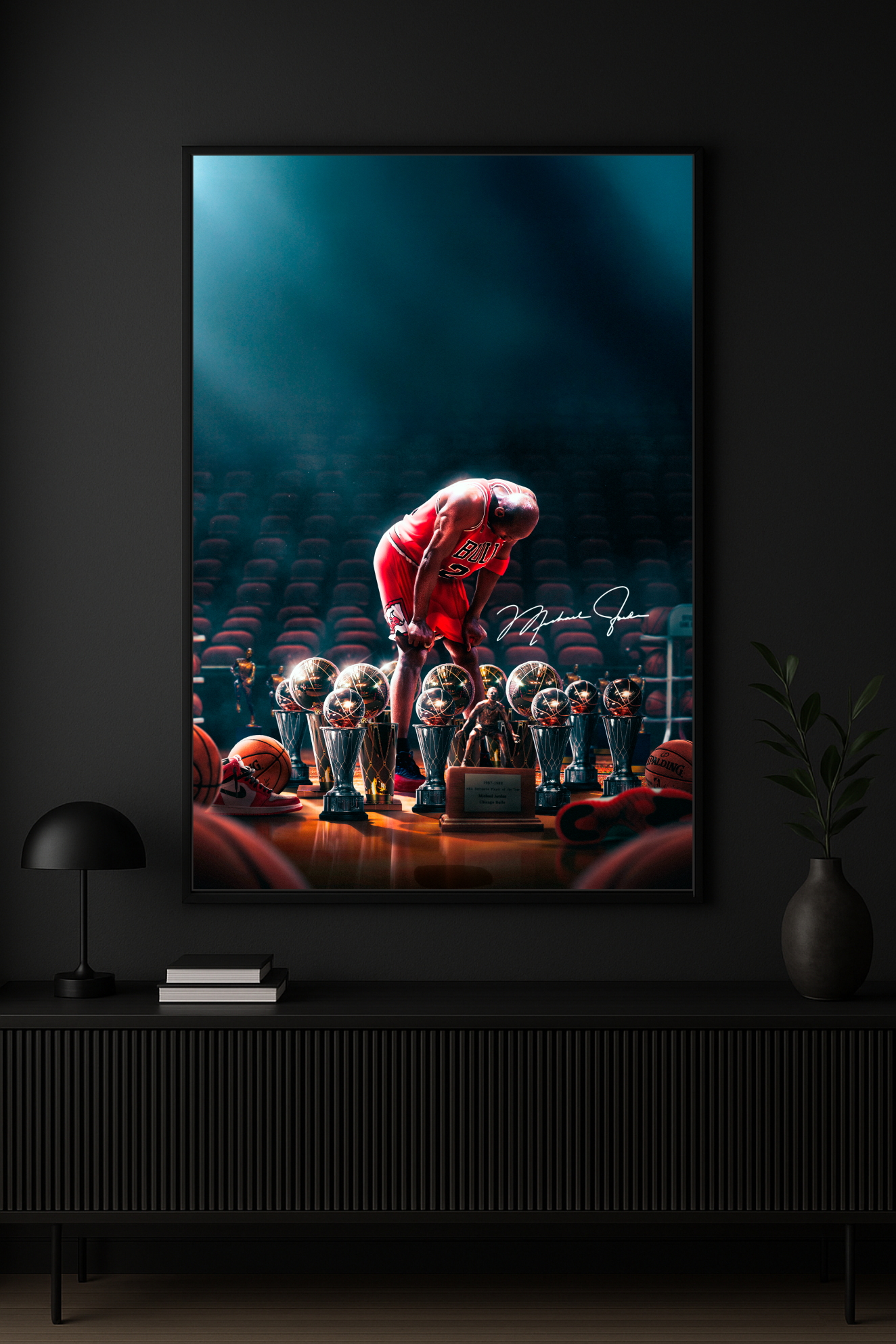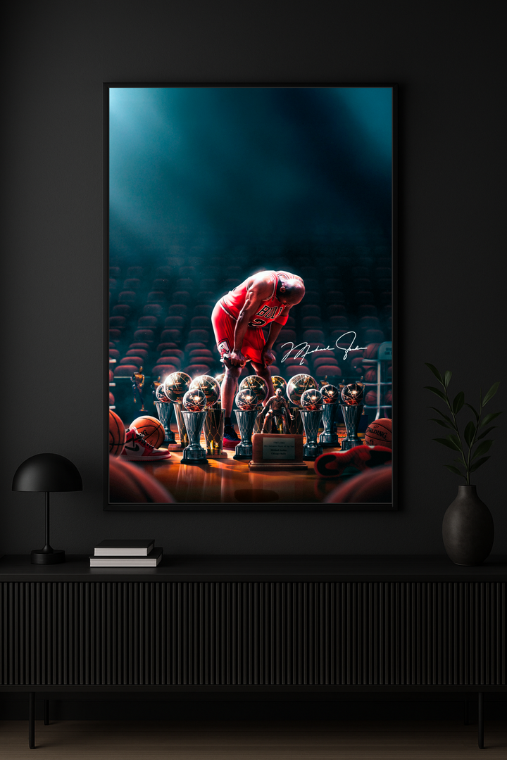 A tribute to the legend who defined basketball history. This Vortex illuminated frame captures Michael Jordan surrounded by the glory he earned — every trophy, every victory, every moment of greatness. A symbol of discipline, passion, and the pursuit of perfection — glowing with timeless energy.