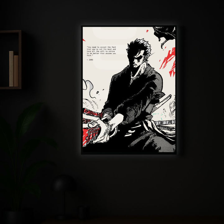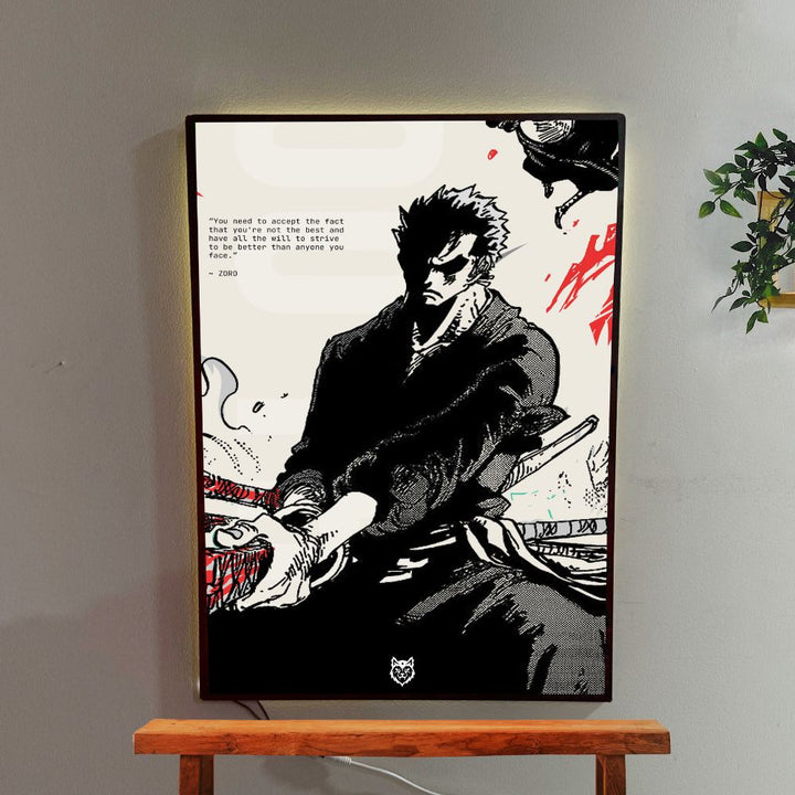 This Pirate Hunter – Zoro Glow Board is a stylish light-up wall art perfect for anime lovers. It shows Zoro in a cool pose with a strong motivational quote. When switched on, the soft glow makes your room look modern and attractive. It’s great for bedrooms, gaming rooms, study tables, or as a gift for friends.