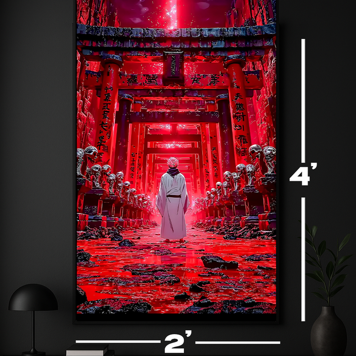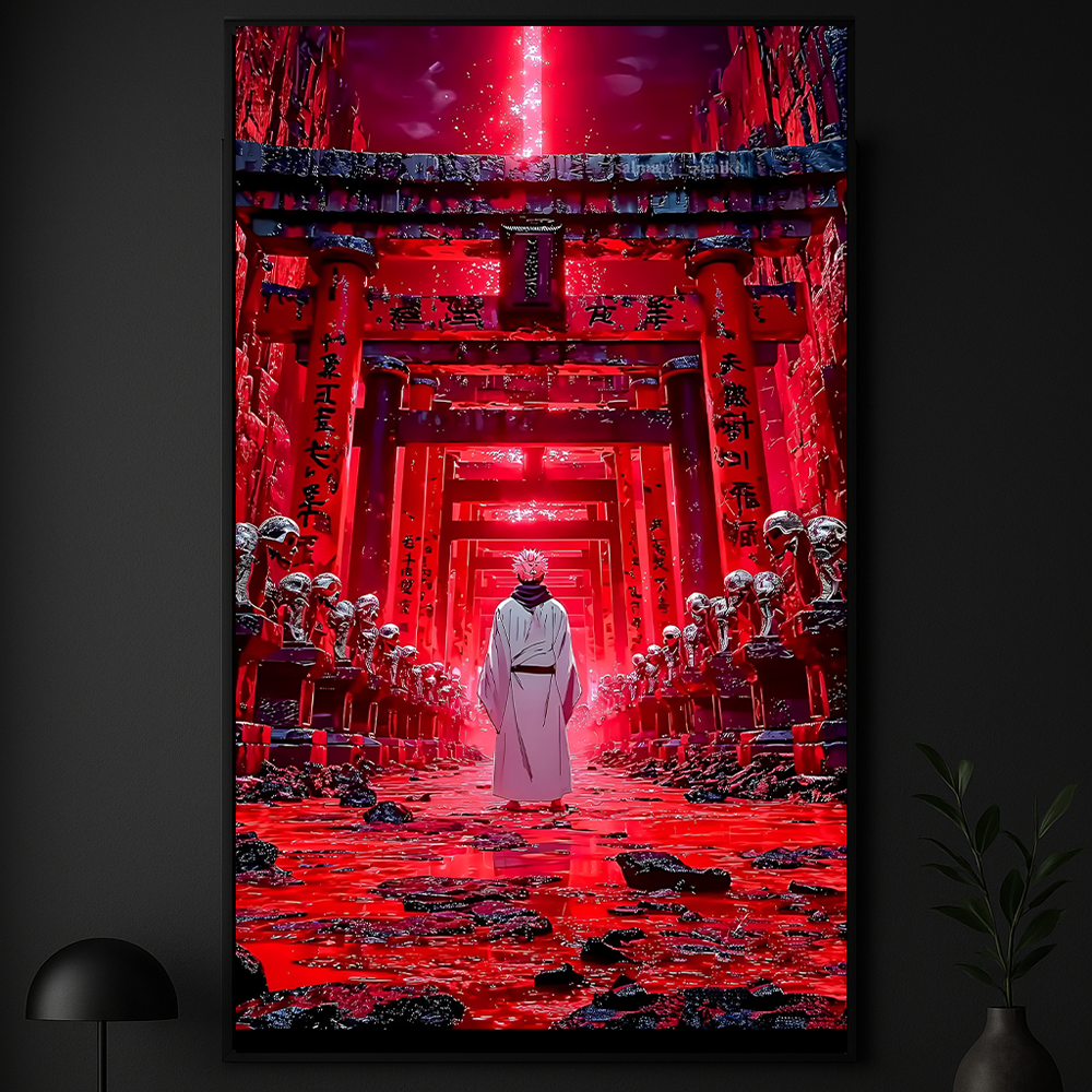 Unleash pure malevolence with “King of Curses – Sukuna’s Wrath”, a powerful illuminated artwork from the Vortex Collection inspired by Jujutsu Kaisen. This glowing masterpiece captures Ryomen Sukuna in his most fearsome form — surrounded by crimson energy and cursed power that radiates through every detail.