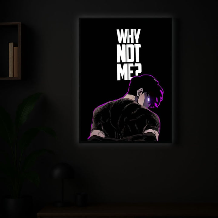 For those who dream big, fight hard, and never settle for less. this artwork speaks straight to the soul — bold, dark, and powerful. It shows a determined figure with glowing eyes, asking the one question that pushes every fighter forward: “Why not me?”